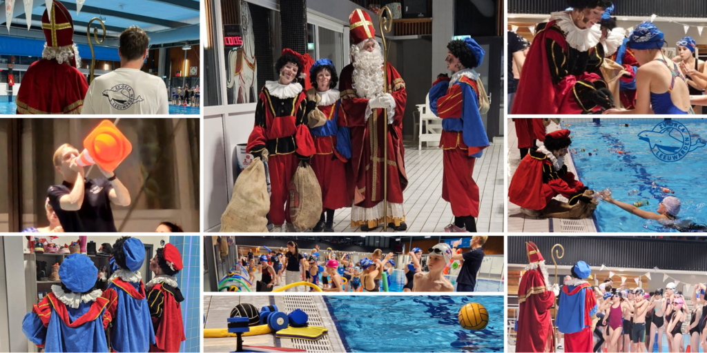Na nog een laatste estafette mochten de kinderen nog vrij spelen – toch altijd het leukste onderdeel van de Sinterklaastraining. Onder het toeziende oog van menig trainers werd er op matten geklommen, gekoprold en gedoken. En terwijl de kinderen zich helemaal in het water konden uitleven, ruimden de vele helpende handen samen de zwemzaal alvast weer op. Na afloop van de training vonden de kinderen een zakje kruidnoten en een chocoladelolly in hun schoen. En dan was het echt tijd om naar huis te gaan. De rust keerde weer in het Kalverdijkje terug maar dankzij de foto’s die we van deze training hebben, zullen we er nog lang aan terug denken.